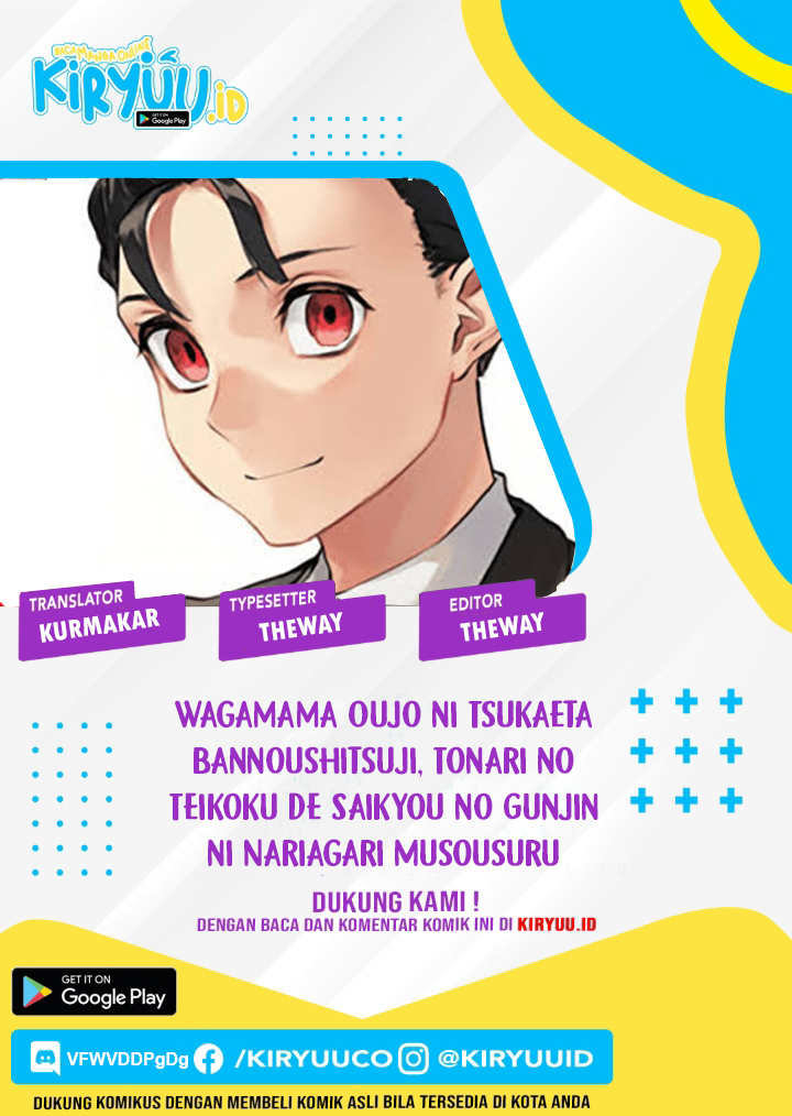 Wagamama Oujo ni Tsukaeta Bannou Shitsuji, Tonari no Teikoku de Saikyou no Gunjin ni Nariagari Musou suru Chapter 1 Bahasa Indonesia